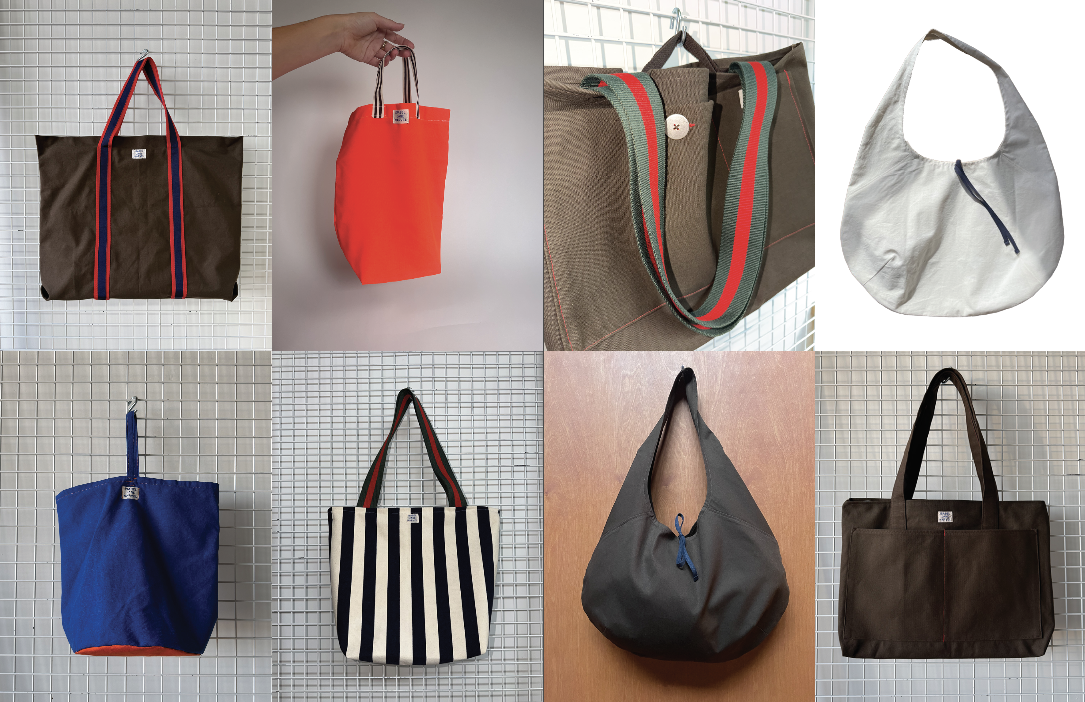 hand-made from cutoffs, scraps, amd deadstock material sourced mostly from NYC’s garment district.